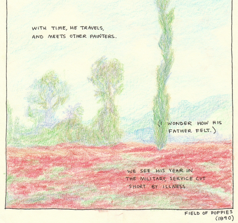 An ode to Monet in pencil crayon reproductions, prose, and biography.